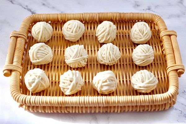 - Bước 3: Cuộn mỳ. Cuộn mỳ xung quanh trứng cho đến khi mỳ bao bọc hết phần trứng bên trong. Dán đuôi của sợi mỳ lại bằng chút nước để chúng không bị bung ra.